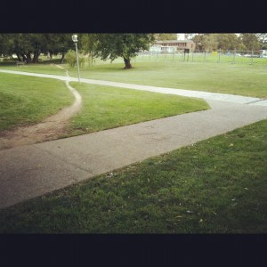 Take for example this picture. I took this while on the way to my appointment. We love to set out our preferred paths for people, the way we think life should be lived. The official path is logical and predictable and clearly conforms with someones plan, or blueprint, for how people should move around the campus. But in reality, this path is not necessarily practical. The students and probably the staff at ANU have found, over the years, that the path their forefathers had wanted them to follow (between the different buildings) was not the best path, not the most efficient or practical. So despite the possibility of getting ones shoes wet or dirty, people have preferred to exercise a level of discretion (some might suggest defiance) in creating for themselves another way of reaching the same goal. Presumably, this would have driven the ground-staff mad over the years, but one suspects that they have probably come to terms with this by now, otherwise you would probably see barricades in place to try and stop people taking that shortcut.