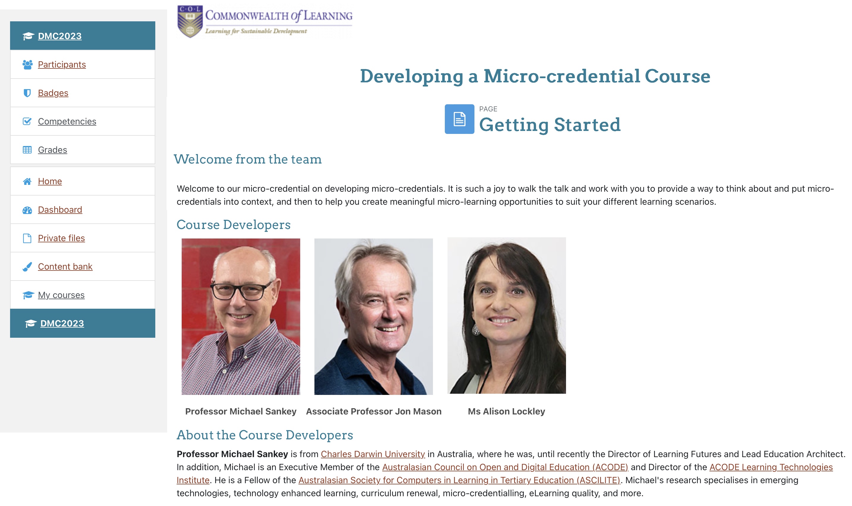- January – November 2024: Develop and deliver a 5-week Moodle course on ‘Developing a Micro-credential’ for the Commonwealth of Learning, to initially be run with universities in Malaysia, then in other Commonwealth countries.